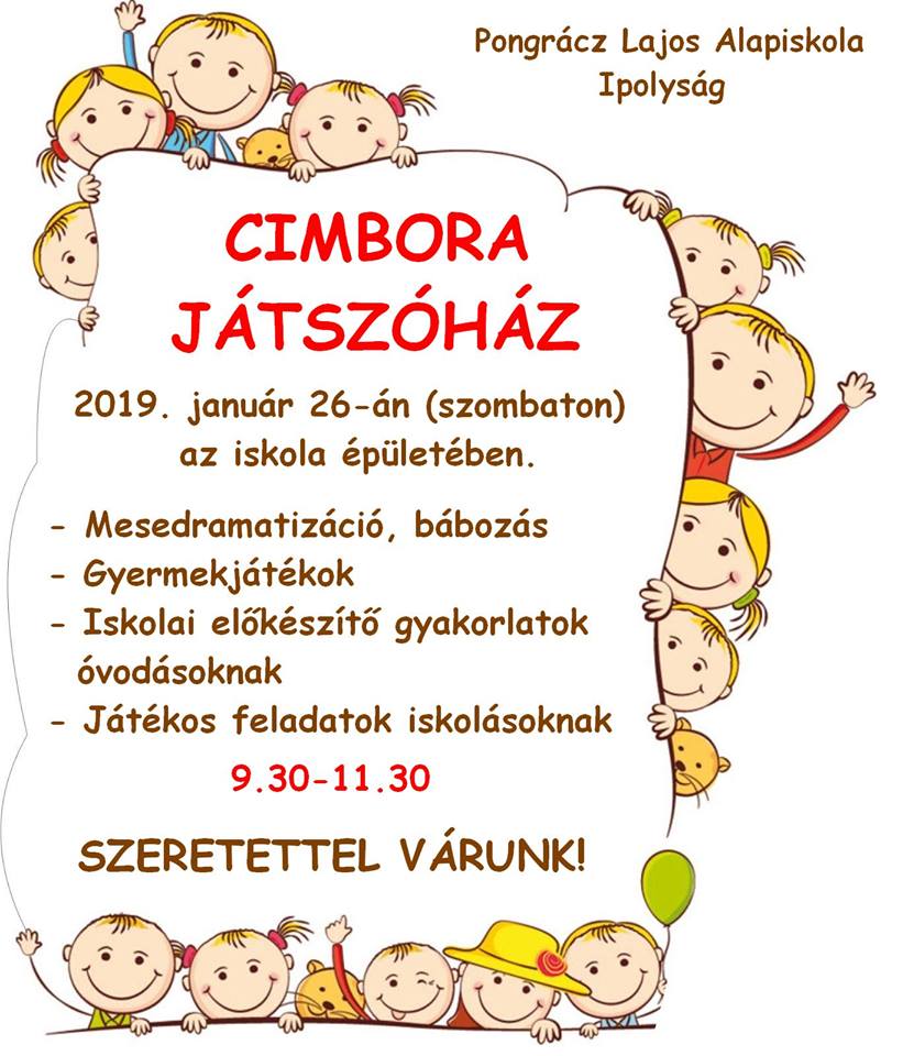 Január 26-án 9:30-tól Cimbora Játszóház az ipolysági Pongrácz Lajos Alapiskola épületében.