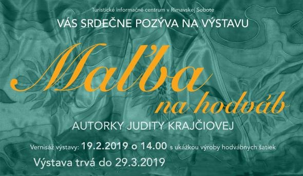 Február 19-én (kedden) 14:00 órakor Rimaszombatban a Városháza kiállítótermében Judita Krajčiová selyemfestő állítja ki műveit Selyemfestészet címmel.