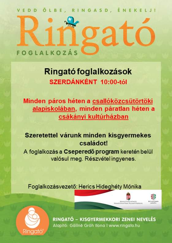 Csallóközcsütörtök községben február 27-én, szerdán 10.00 órától ringató-foglalkozást reneznek.