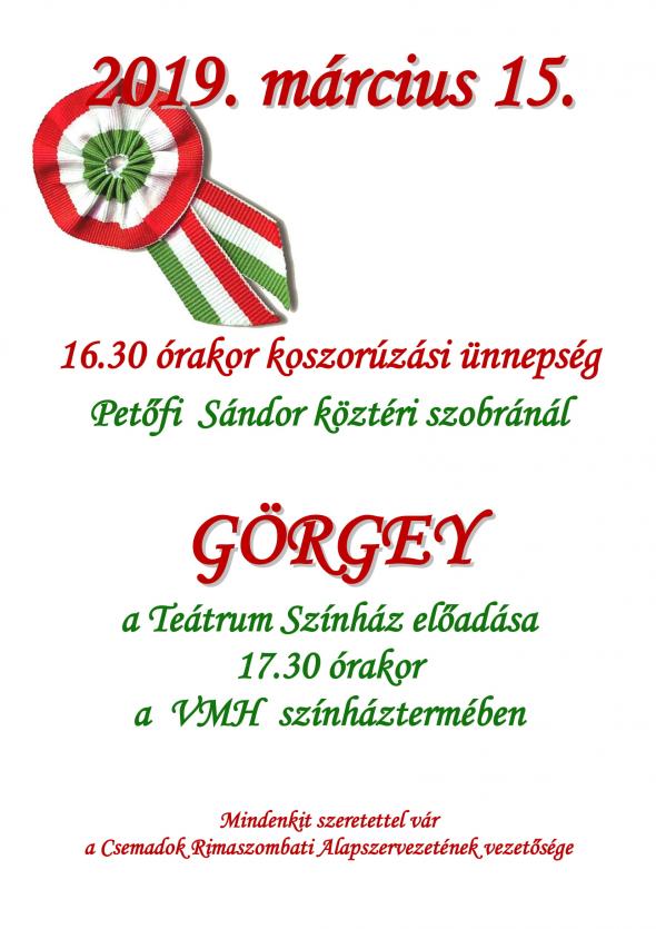 17:30 órakor színházi előadás a Városi Művelődési Központban Görgey címmel.