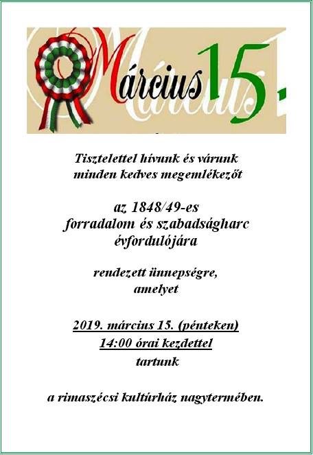 1. Március 15-én (pénteken) 14:00 órakor Rimaszécsen koszorúzást és megemlékezést tartanak.