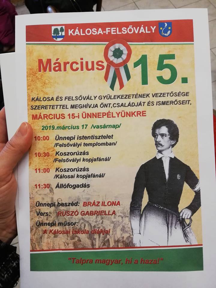 1. Március 17-én (vasárnap) 10:00 órakor Kálosán és Felsővályon szintén koszorúzás és megemlékezés lesz.