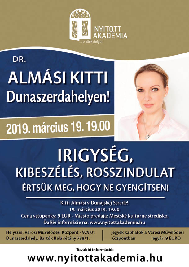 Dunaszerdahelyen március 19-én, kedden 19.00 órától előadásra kerül sor. Részletek ITT.