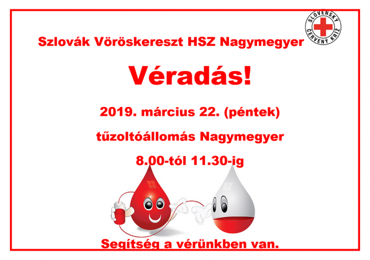 Nagymegyeren március 22-én, pénteken 8.00 órakor véradás kezdődik.
