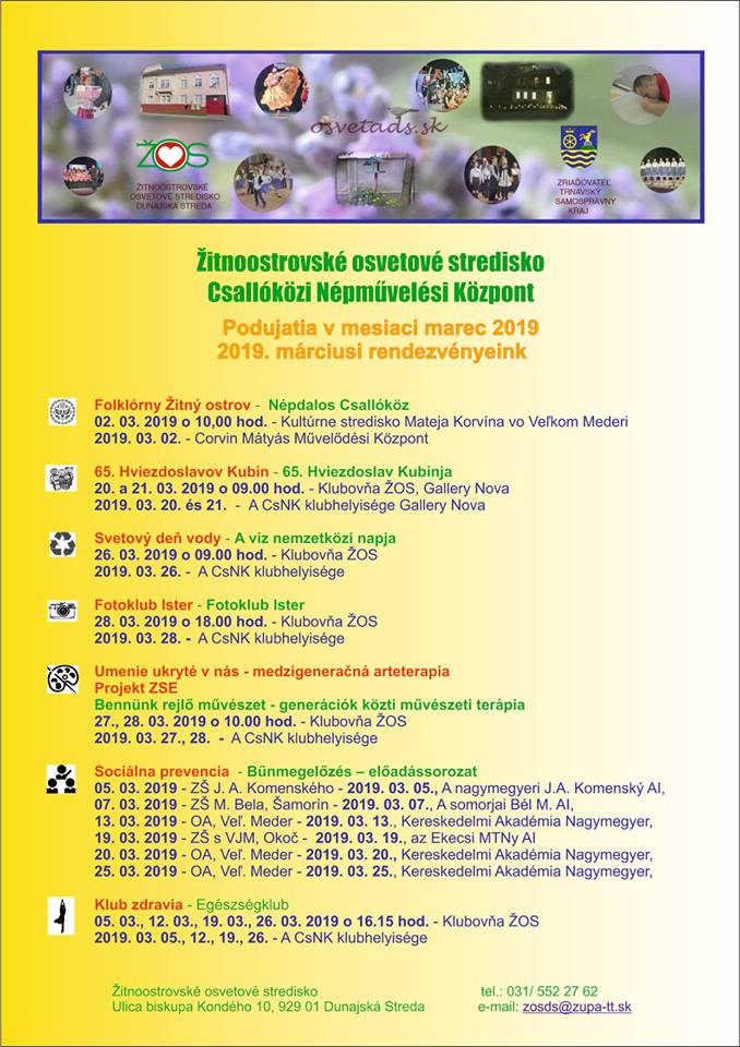 Szeretné tudni, hogy kell szakszerű elsősegélyt nyújtani gyermekének? Fontos Önnek környezete tisztasága? Ízléses, fekete humorral gazdagított filmet nézne meg? Mutatjuk, mit kínálnak Önnek a Dunaszerdahelyi járás egyes településein:
