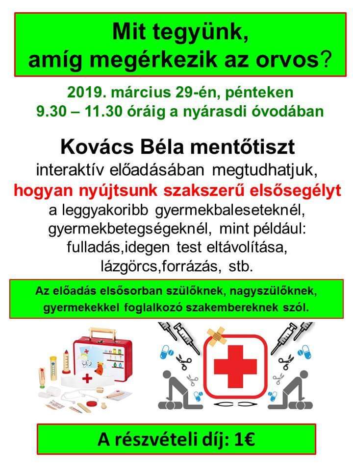 Nyárasdon március 29-én, pénteken 9.30 és 11.30 között az elsősegélynyújtásról tartanak előadást.