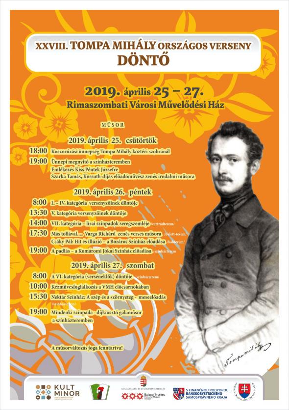 Április 25–27-én (csütörtök, péntek, szombat) a rimaszombati Városi Művelődési Központban kerül megrendezésre a XXVIII. Tompa Mihály Országos Szavalóverseny.