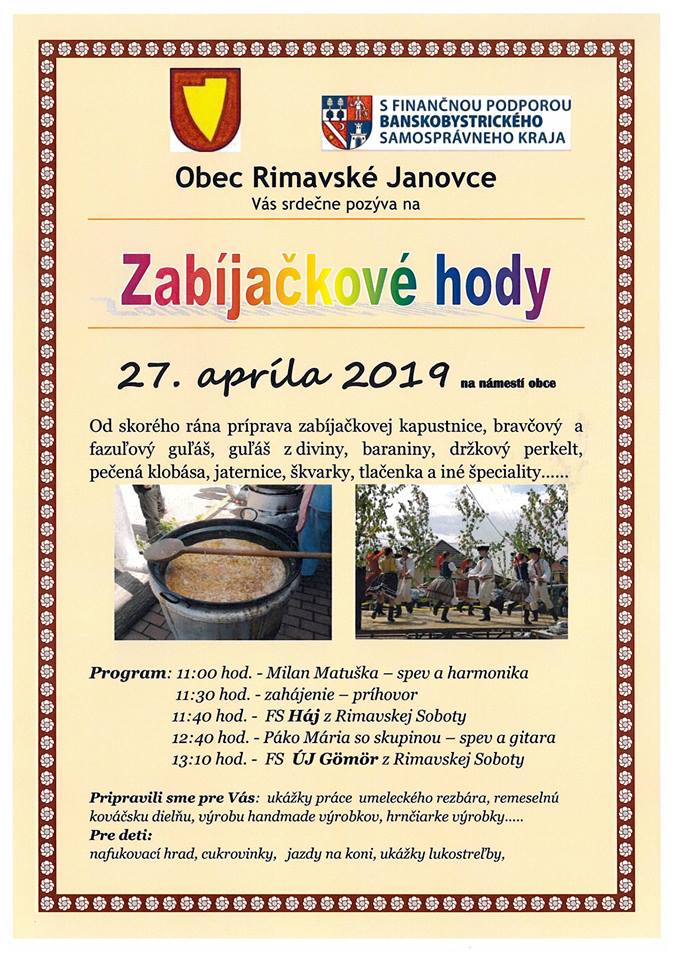 Április 27-én (szombaton) Rimajánosiban Falusi Disznótoros Mulatság lesz a község szervezésében.
