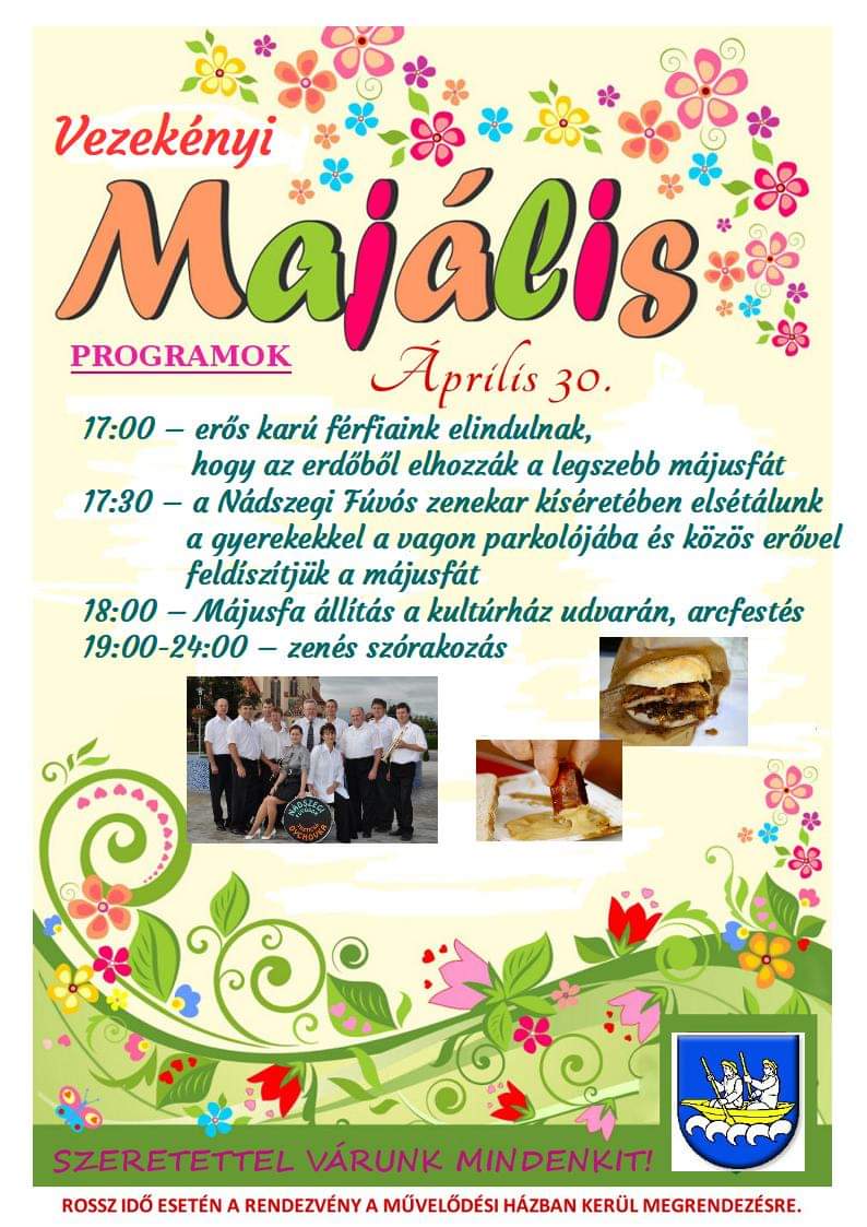 Vezekényen április 30-án, kedden 17.00 órától tartják a vezekényi majálist.