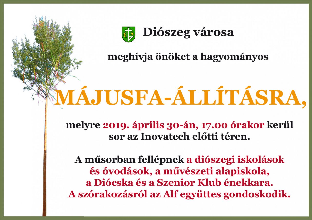 Diószegen április 30-án, kedden 17.00 órakor májusfát állítanak.