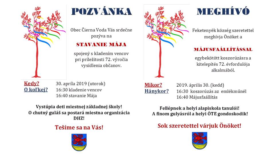 Feketenyéken április 30-án, kedden 16.30 órakor májfaállítás lesz.