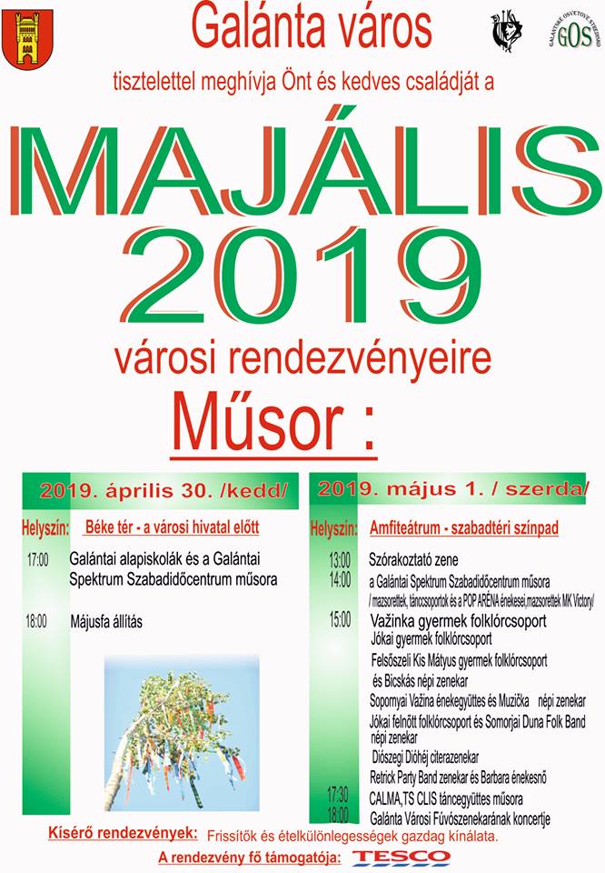 Galántán április 30-án, kedden 17.00 órától májfát állítanak a városi hivatal előtti téren.
