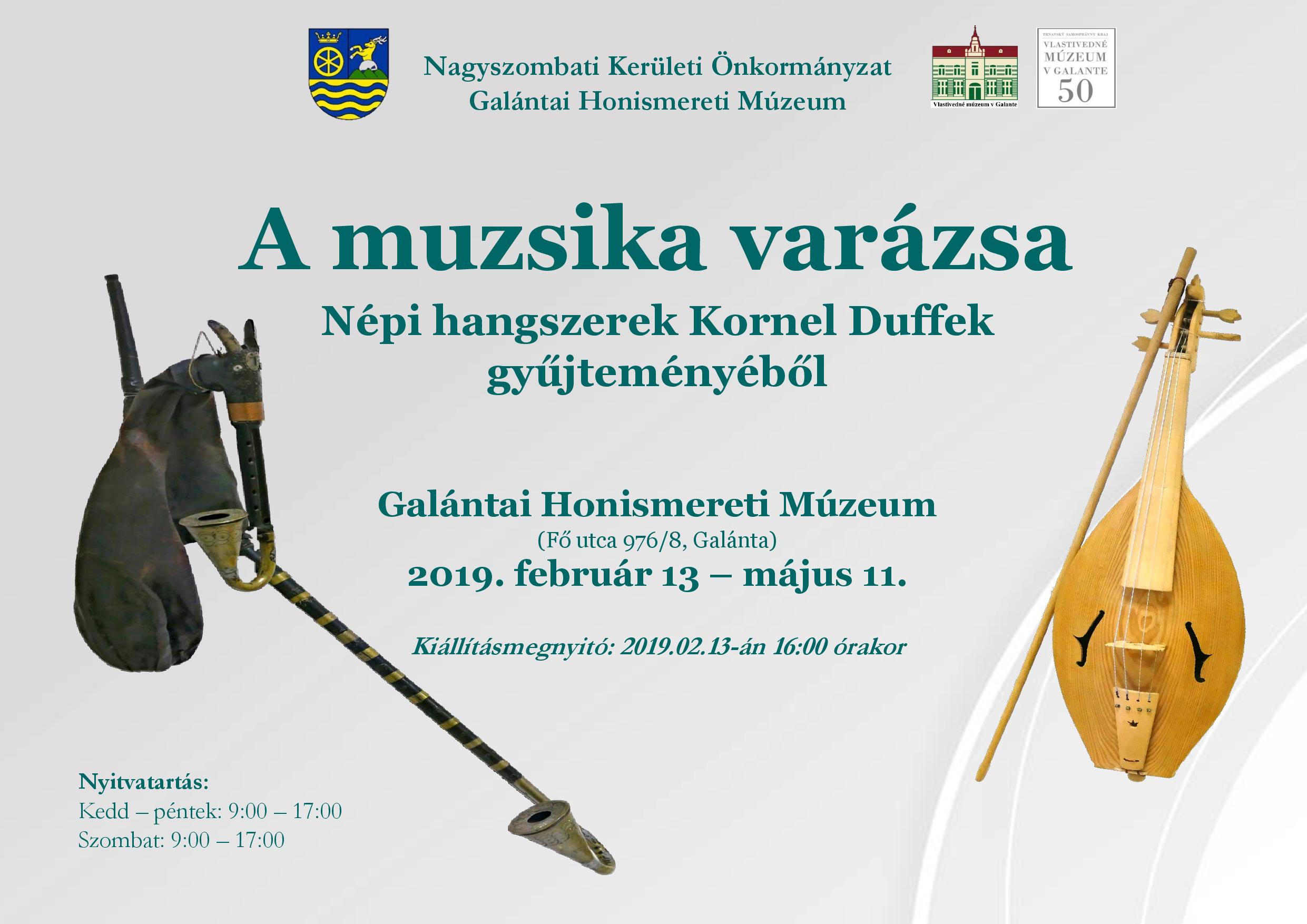Galántán A muzsika varázsa c. kiállítás tekinthető meg. Kornel Duffek Galántán született, népi hangszergyűjteménye pedig egyedülálló.