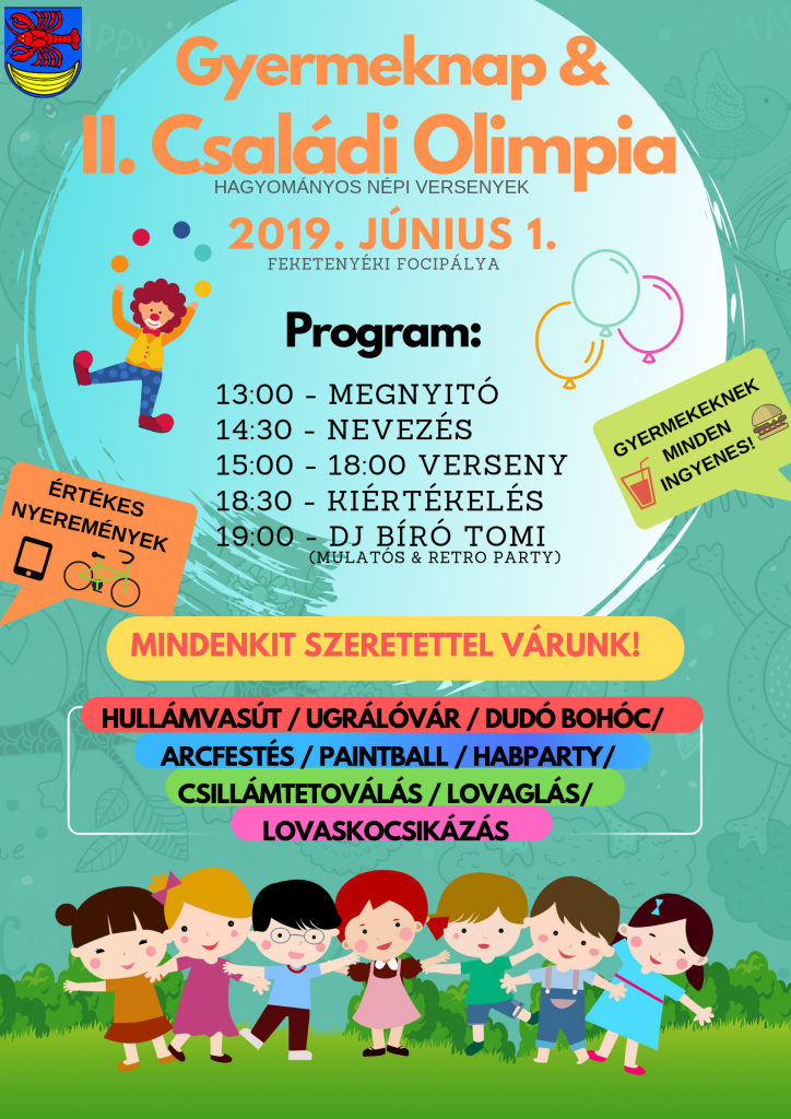 Feketenyéken június 1-jén, szombaton 13.00 órakor megnyitja kapuit a gyermeknapi rendezvény.