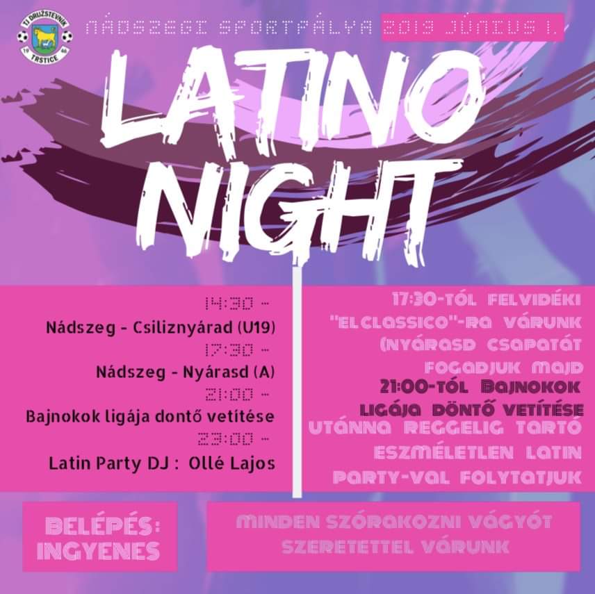 Nádszegen június 1-jén, szombaton 14.30-kor latin party kezdődik.