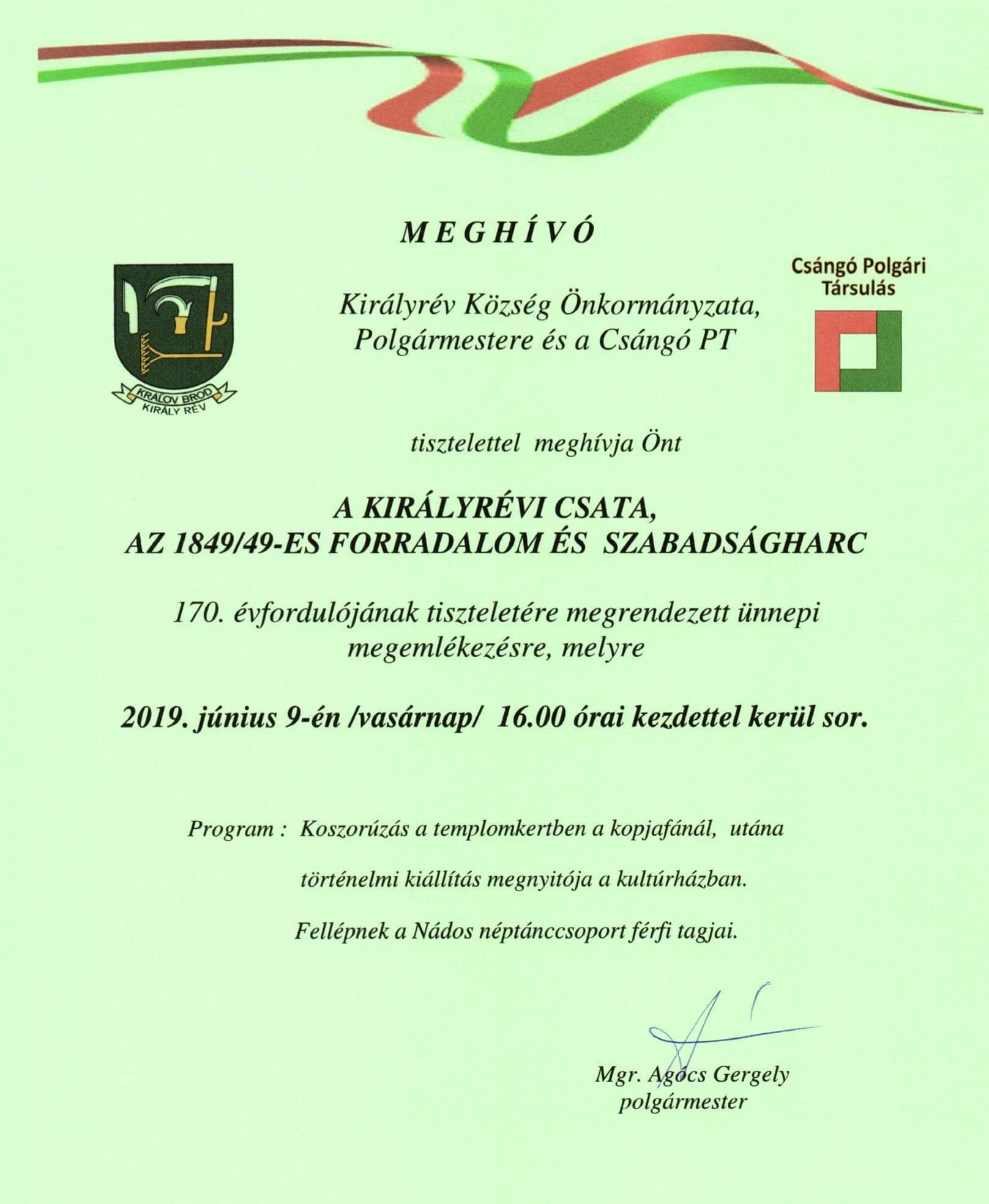 Királyrévben június 9-én, vasárnap 16.00 órától megemlékezésre kerül sor.