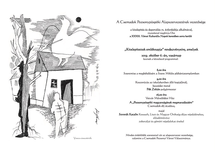 Október 6. (vasárnap) – Kitelepítettek emléknapját Pozsonypüspökin