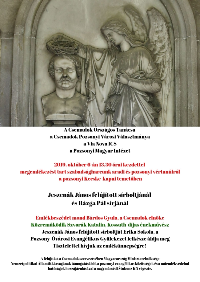 Október 6. (vasárnap) – Megemlékezés az 1849-es pozsonyi mártírokról a pozsonyi Kecske-kapui temetőben
