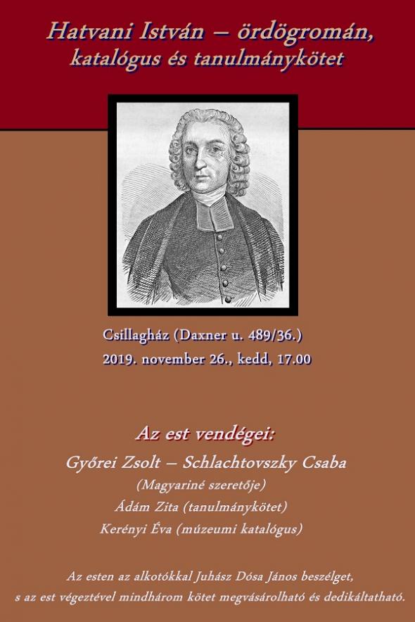 Hatvani István – ördögromán, katalógus és tanulmánykötet címmel Hatvani István emlékét idézik meg  november 26-án, kedden 17:00 órai kezdettel a rimaszombati Csillagházban (Daxner u. 36.).