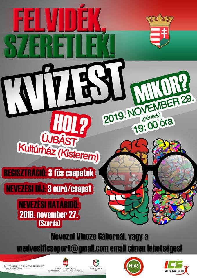 November 29-én (pénteken) 19:00 órakor Egyházasbáston, a kultúrházban a Medvesalja Ifjúsági Szervezet rendezésében Felvidék szeretlek címmel kvízestet rendeznek.