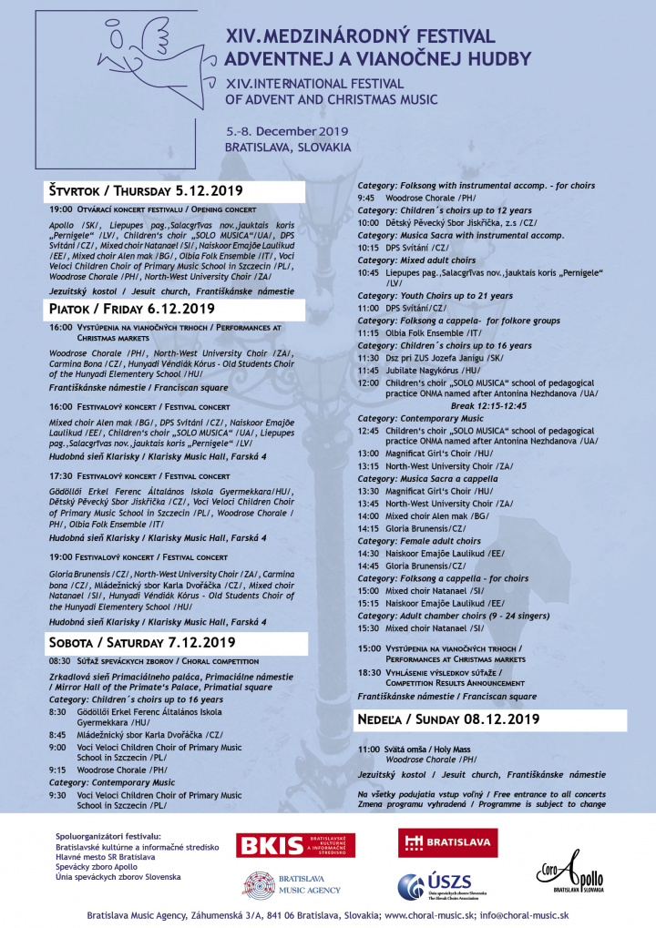 December 5–8. (csütörtöktől vasárnapig) – Adventi és Karácsonyi Énekek Nemzetközi Fesztiválja