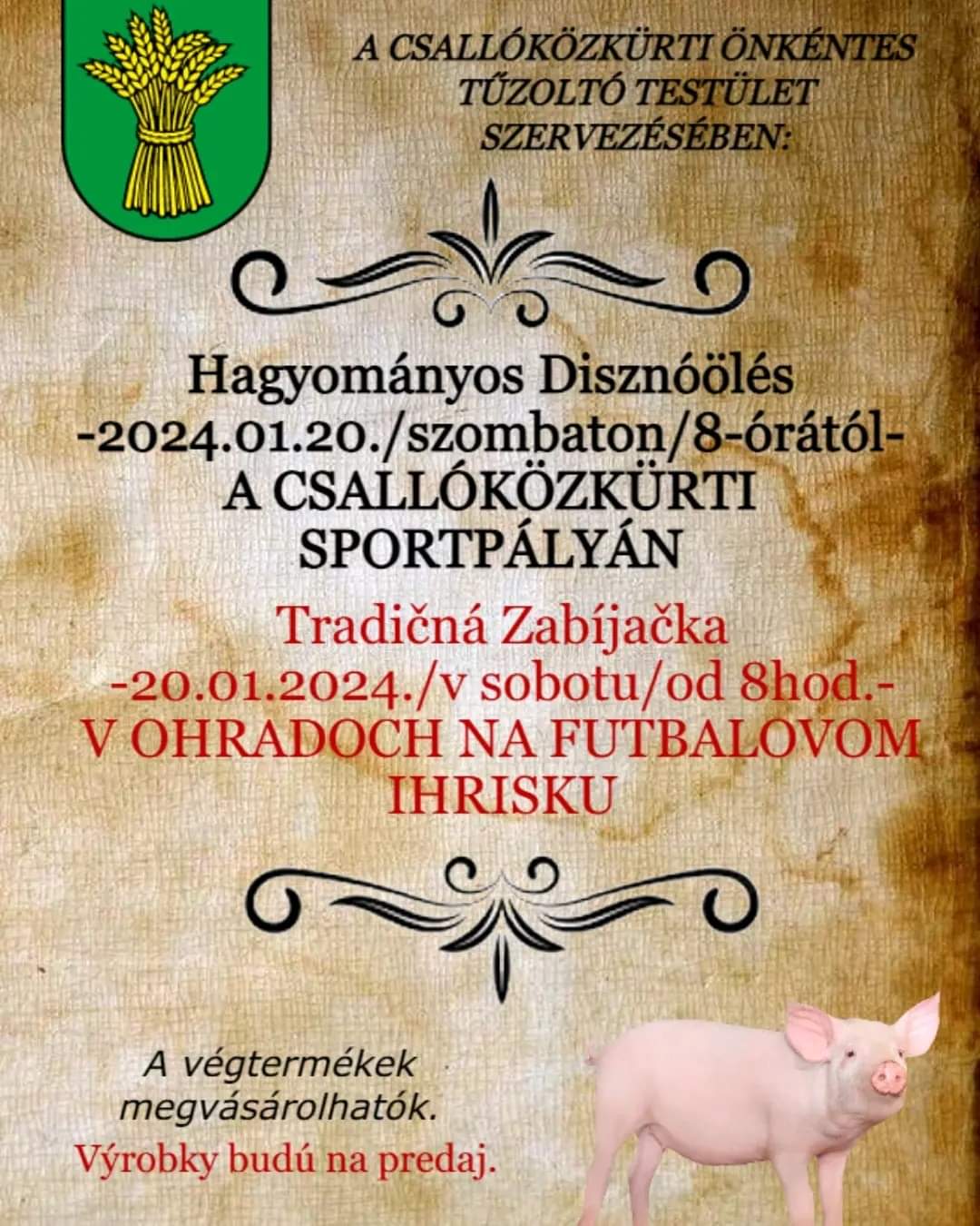 Csallóközkürtön disznótort szerveznek.