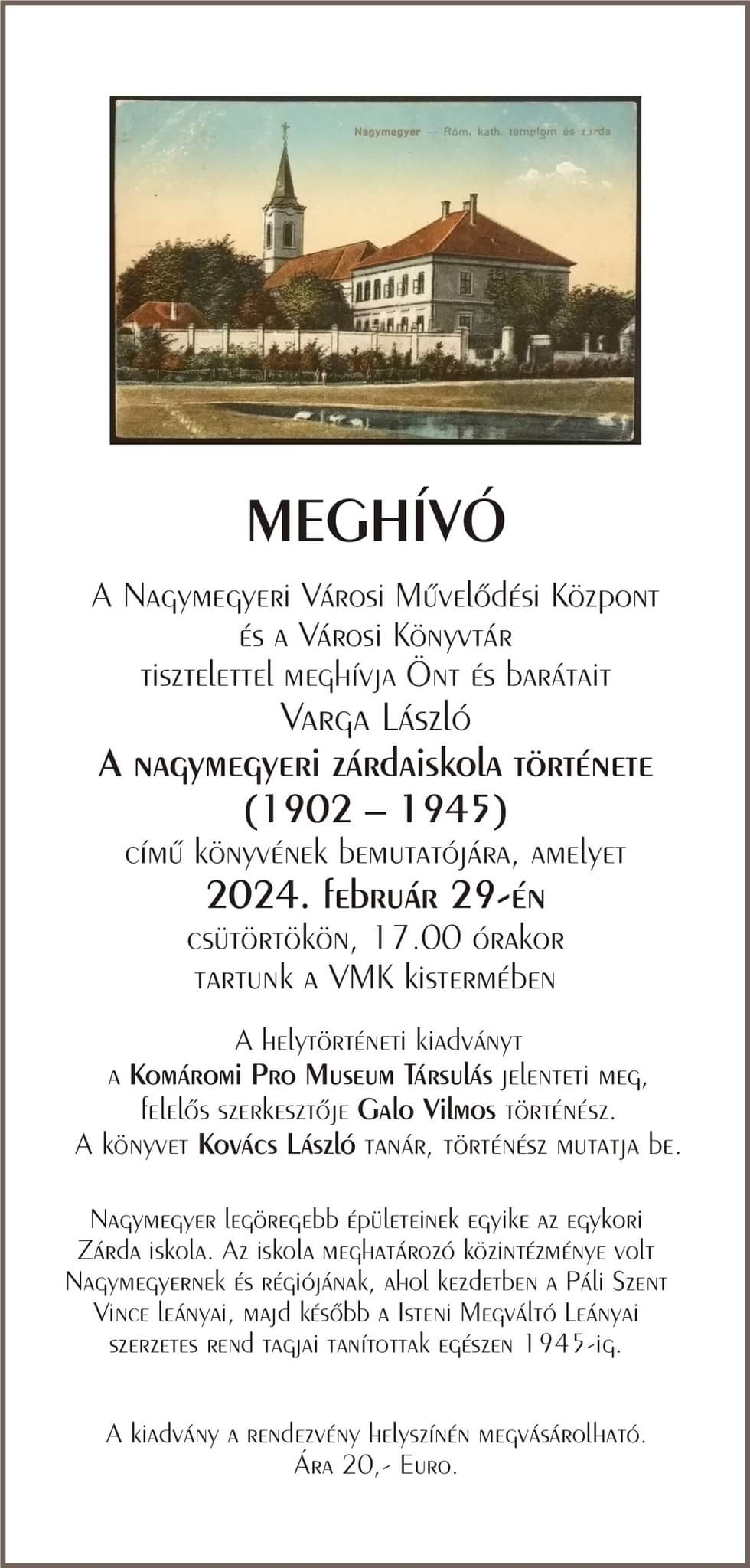 Nagymegyeren könyvbemutatót tartanak.