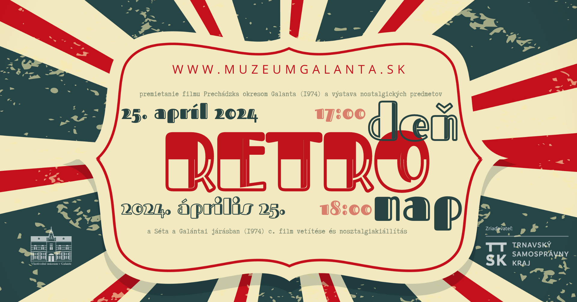 A Galántai Honismereti Múzeum nosztalgikus napok következnek. 2024. április 25-én, csütörtökön 18:00 órakor levetítik a nyilvánosságnak azt a gyűjteményben őrzött dokumentum-reklámfilmet, amelyet a Galántai járásról készítettek éppen 50 évvel ezelőtt. A nosztalgikus hangulat egészen május 1-ig tart, addig lesz ugyanis látogatható egy kis kiállítás a 20. század 60-as éveitől összeválogatott tárgyakból, melyek a múzeum és az intézmény munkatársainak magángyűjteményéből származnak.