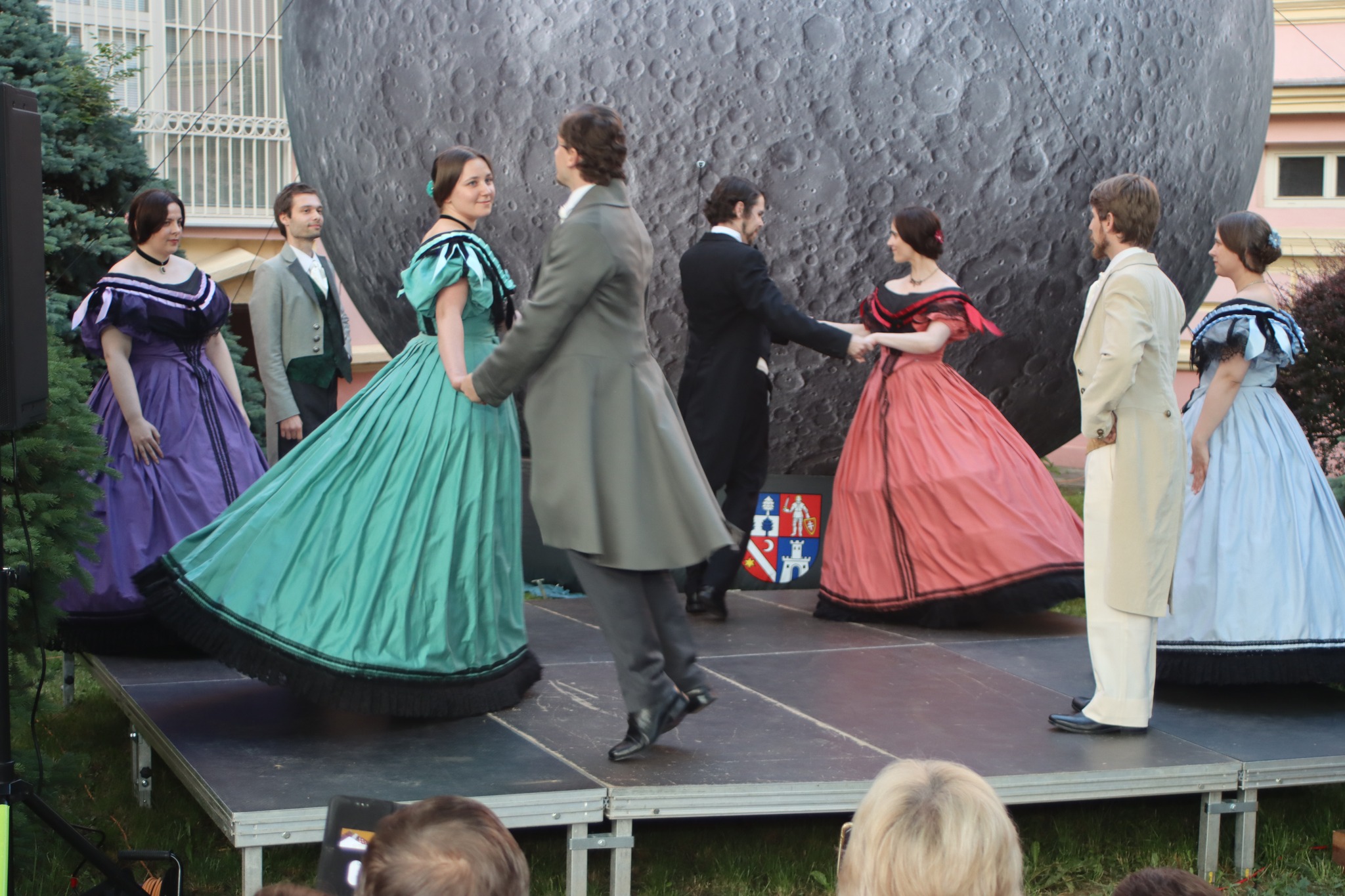Este hat órától a Musicantica Slovaca szórakoztatta a közönséget barokk kori különleges melódiáival, közben pedig kosztümös tárlatvezetés keretében a múzeum állandó honismereti kiallítása is megetekinthetővé vált. Fél nyolctól a 19. századnak tipikus táncaiba, báli hangulatába nyerhettek betekintést azok, akik a Teatro Olimpico Nuevo bemutatójának, majd pedig táncoktató workshopjának voltak szem és fültanúi.