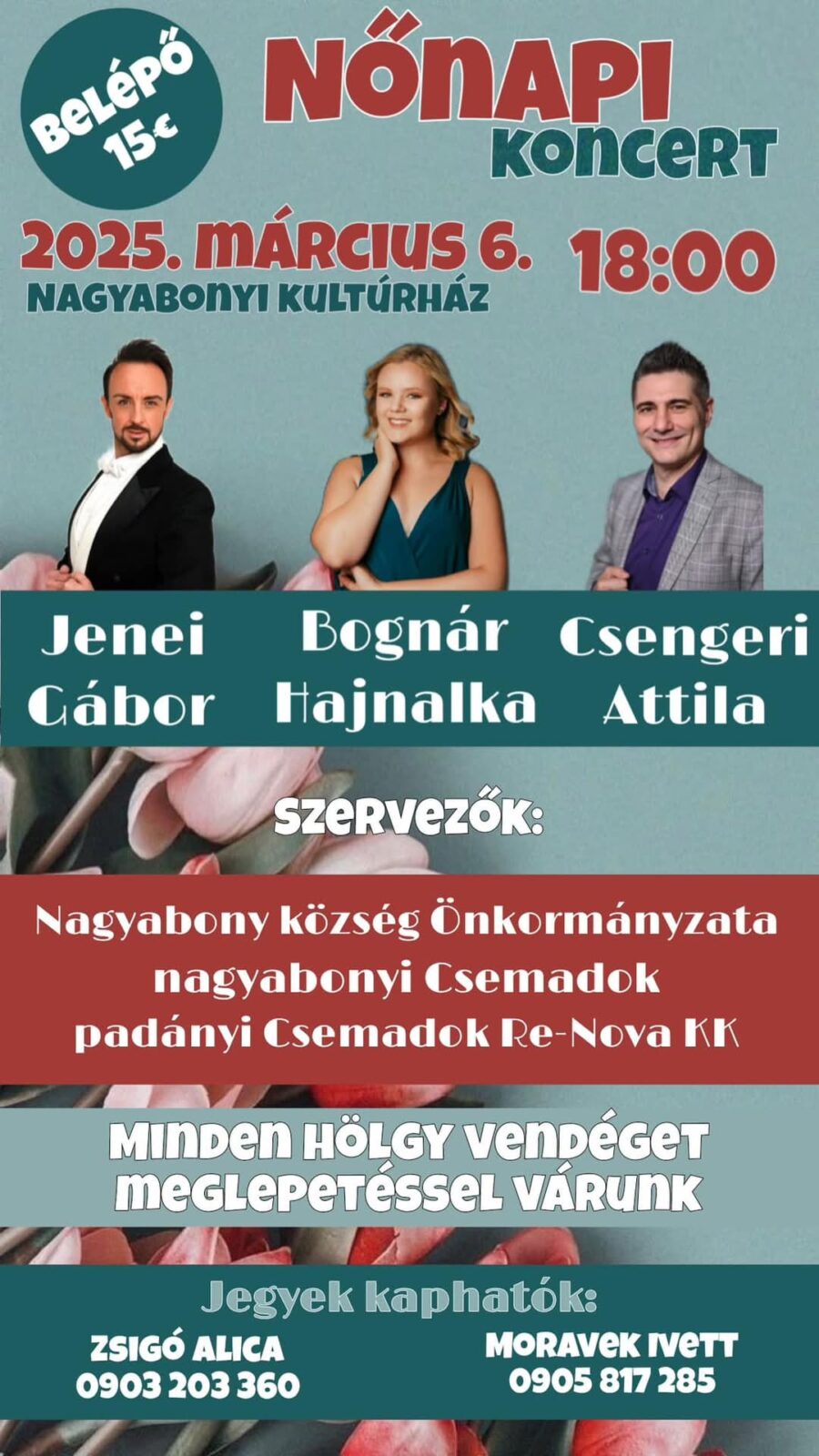 Nagyabonyban nőnapi koncertre várják az érdeklődőket.