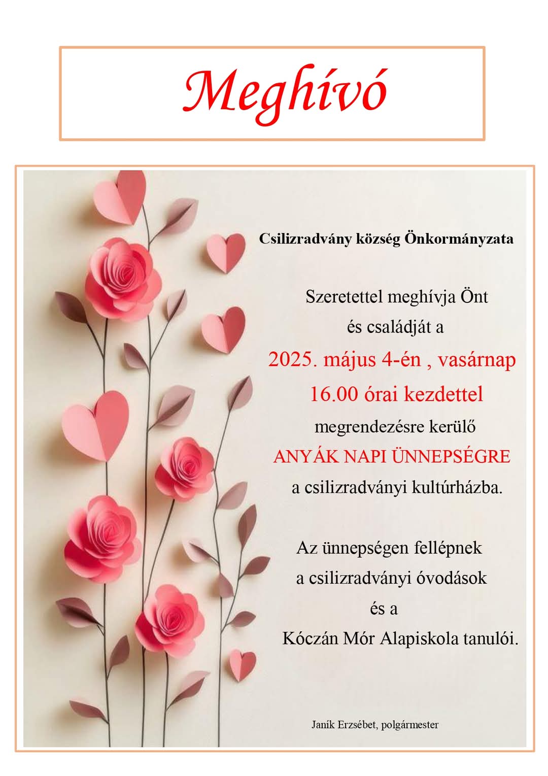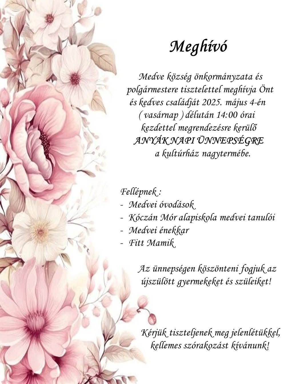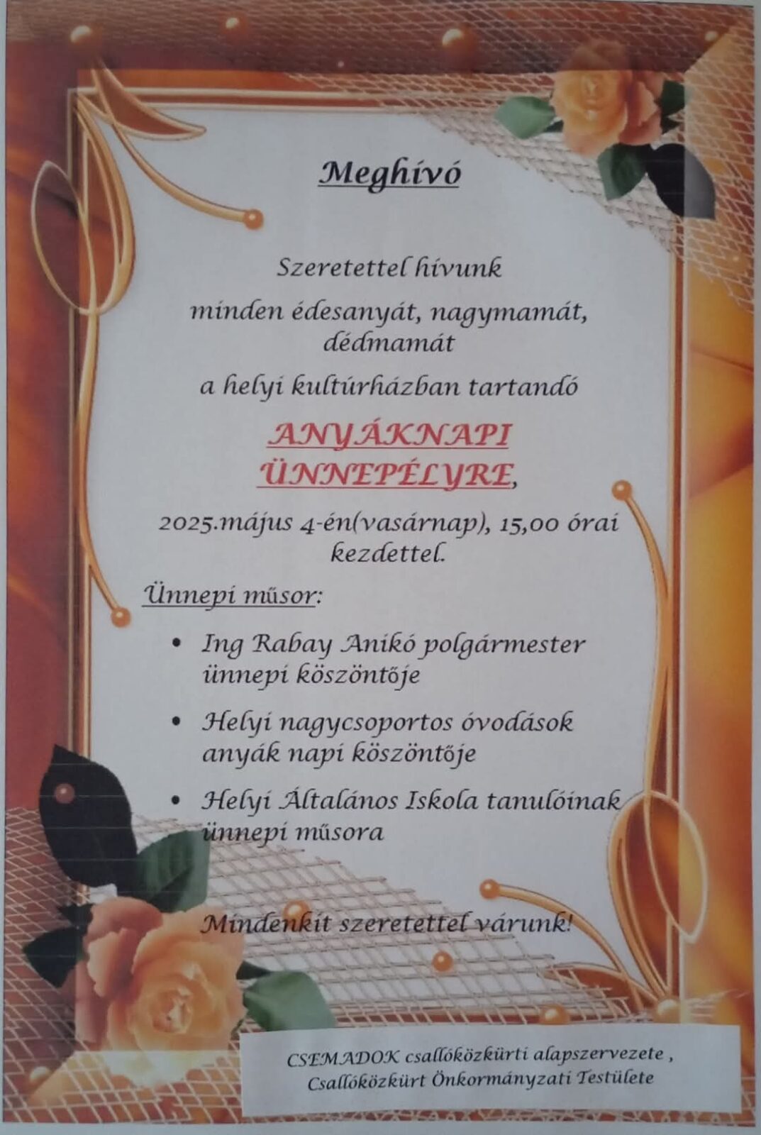 Rendezvények anyák napja alkalmából