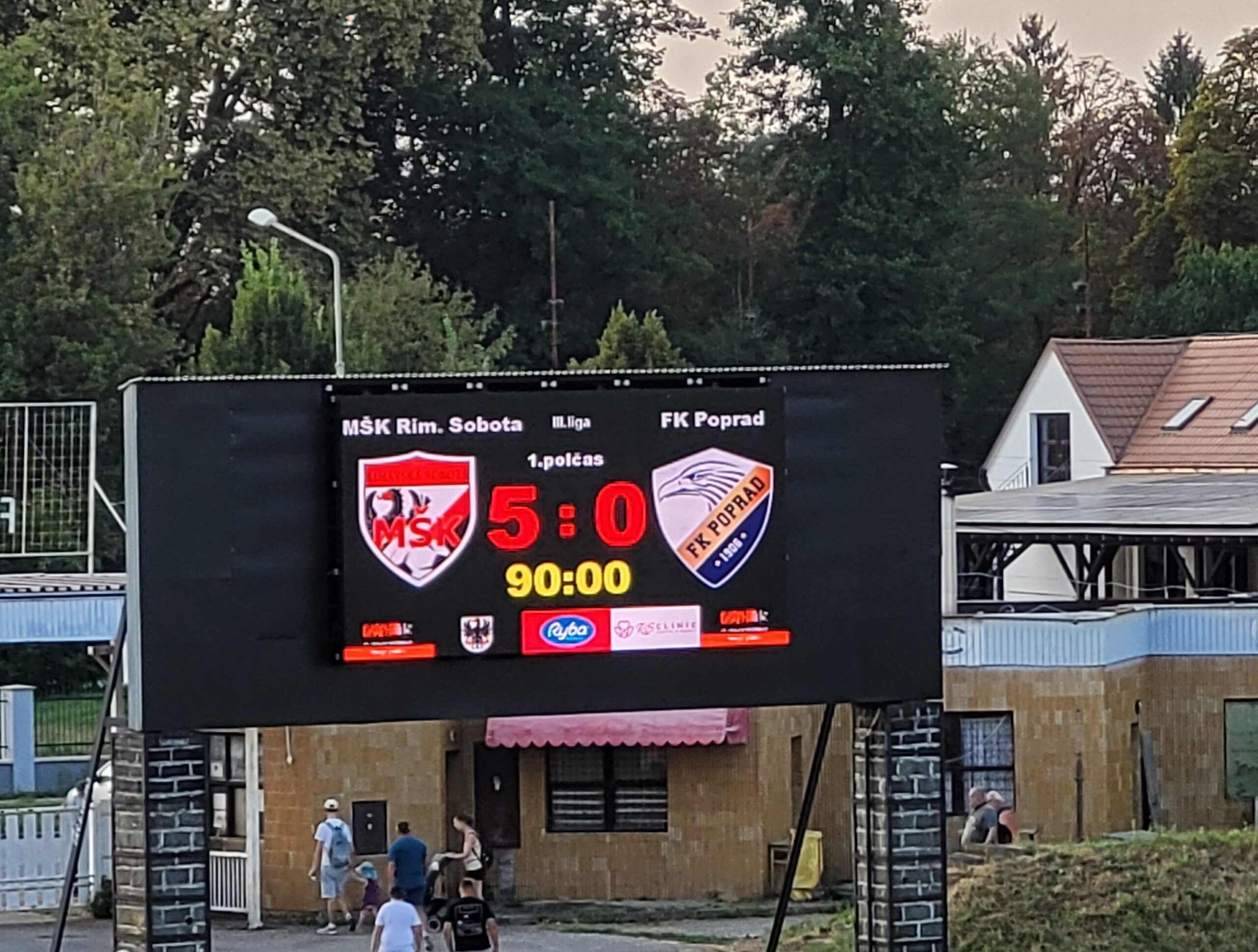 A rimaszombati mérkőzés teljes mértékben a jóval elszántabbnak látszó hazaiakról szólt, akik a szünetig háromszor is betaláltak a poprádiak kapujába. Előbb a 15. percben a jó ütemben kilépő Jinjolava gurított ügyesen a kifutó kapus mellett a hosszú sarokba, majd öt perccel később Petrán egy sarokrúgás után csúsztatott mesterien a vendégek kapujába.