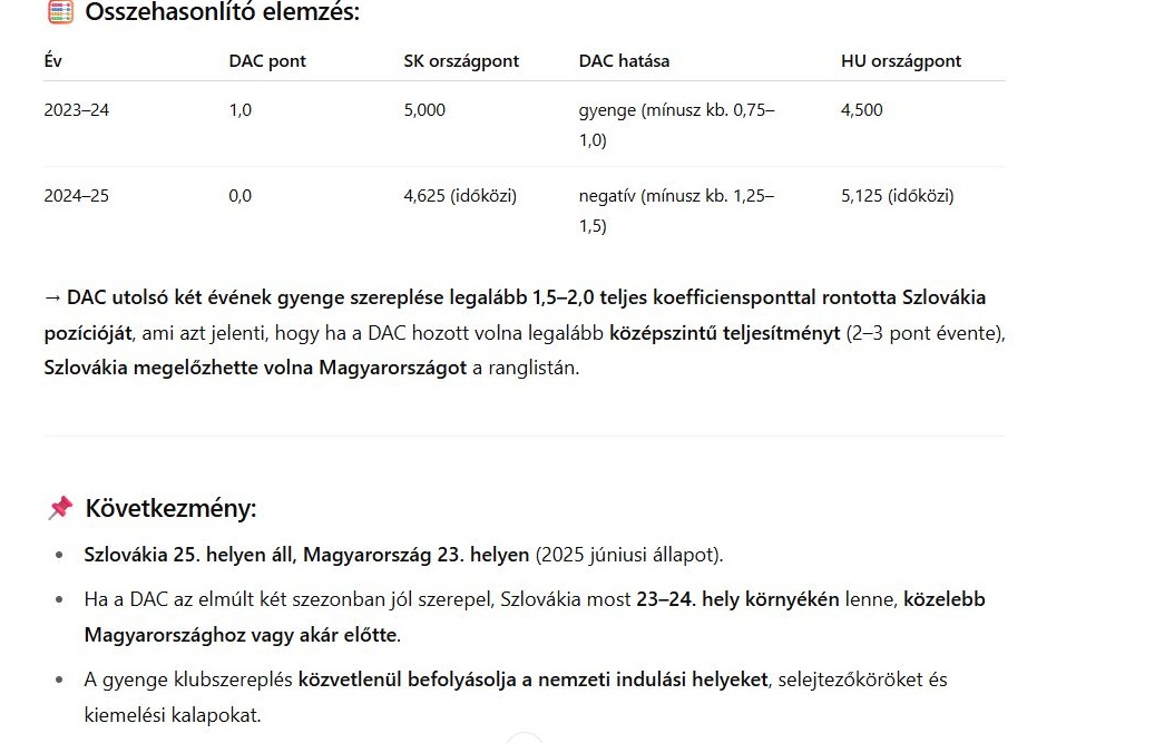 Azért, mert a szlovák bajnokság gyengébb besorolású mint a magyar első osztály. Paradox módon pont a DAC elmúlt évekbeli kupaszereplésének következtében. Lásd alábbi elemzés: