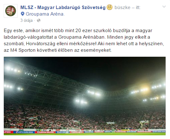 A magyar szövetség (MLSZ) csütörtök délután Facebook-oldalán jelezte, hogy minden belépőt megvettek a drukkerek.