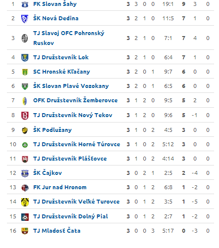 Az ipolyságiak egyedüli csapatként mindhárom mérkőzésüket megnyerték. A listavezető mögött Garamújfalu következik 2 pontos hátránnyal, de veretlen maradt Oroszka is a tabella harmadik helyén.