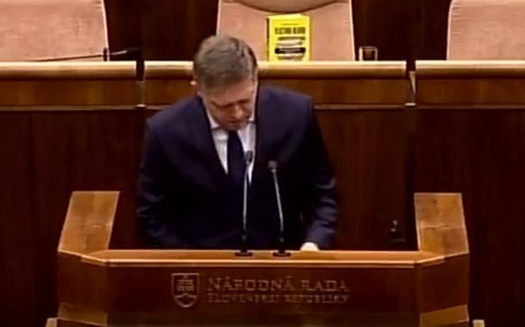 Erre azonban már a parlament alelnöke, Andrej Hrnčiar (Most-Híd) gyorsan reagált. Miközben a miniszterelnök beszélt, ő gyorsan eltüntette a nem várt ajándékot.