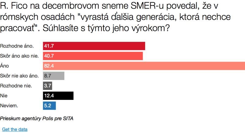 A romatelepeken újabb generáció nőtt fel, amely nem akar dolgozni – ezt Robert Fico mondta a Smer decemberi kongresszusán. A Polis legfrissebb felmérése szerint a szlovákiai lakosok 82 százaléka ezzel a kijelentéssel azonosulni tud.