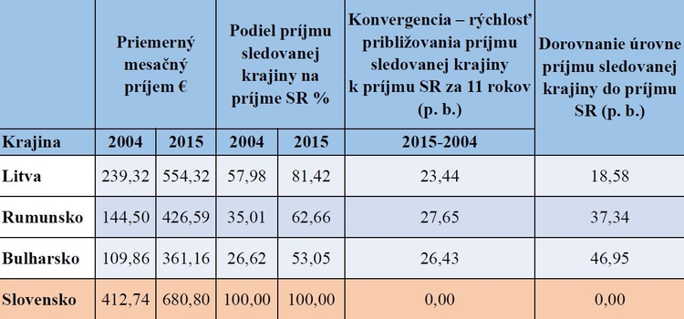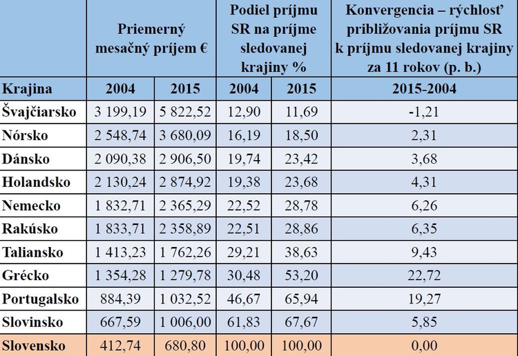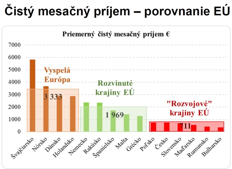 Hosszútávfutás. Így is lehetne jellemezni a Szakszervezeti Szövetségek Konföderációja szerint annak folyamatát, hogy a szlovákiai bérek elérjék a nyugat-európai szintet. A szakemberek összehasonlítása szerint jelenleg az Európai Unió fejlődő országai közé tartozunk. Az alábbi táblázat a vezető nyugati, a fejlett és a fejlődő országok egy főre jutó havi nettó bevételét hasonlítja össze: