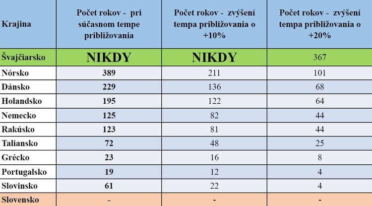Érdemes azt is megvizsgálni, hogy a kevésbé fejlett országok mikor érik el a szlovákiai bérszintet. Ehhez a legközelebb Litvánia áll, aki 10 éven belül utolérheti Szlovákiát.