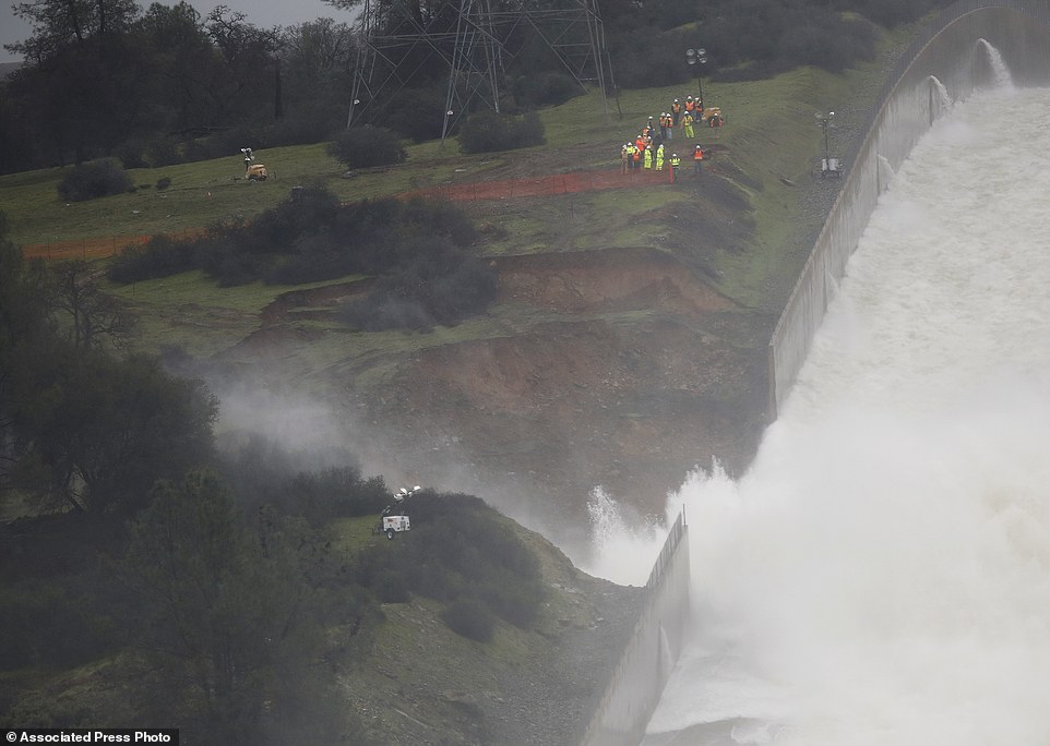 Egy 60 méter széles és több mint 9 méter mély lyuk keletkezett a gát csaknem 1,6 kilométer hosszú , szabályozható túlfolyóként szolgáló árapasztóján, amit folyamatosan egyre nagyobbra mos a víz. A helyi vízügyi hivatalnak azonban nincs választása, folytatják a víz kiáramoltatását az árapasztón keresztül, hogy lépést tarthassanak a heves felhőszakadások utáni áradással.