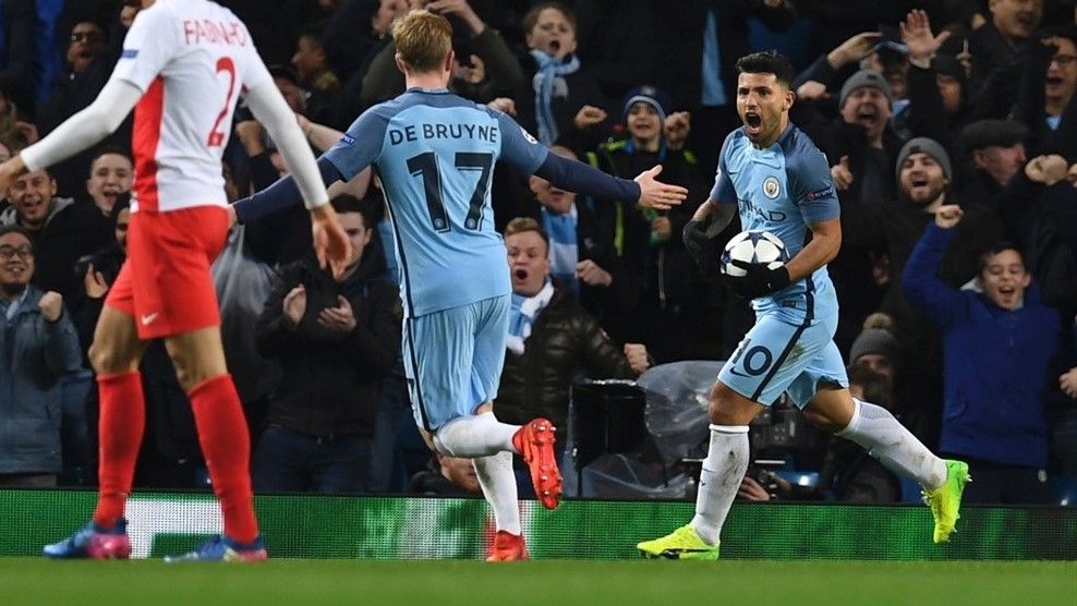 Guardiolaval egyébként karrierje során eddig még nem fordult elő, hogy ne nyerje meg csoportját, az idei kiírásban igen. A nyolcaddöntő első mérkőzésén az első igazán nagy lehetőség a 19. percben adódott a vendégek előtt, egy szögletet követően Glik fejelhetett tisztán, azonban a lengyel védő kísérlete kaput tévesztett. Hét perccel később Leroy Sané remek szólóját követően Sterling elé tette a labdát, aki közelről a hálóba vágta a City vezető gólját. A hazaiak azonban sokáig nem élvezhették a vezetést, a 32. percben Falcao fejjel mattolta Caballerot és értekes idegenbeli gólt szerzett a Monaconak.