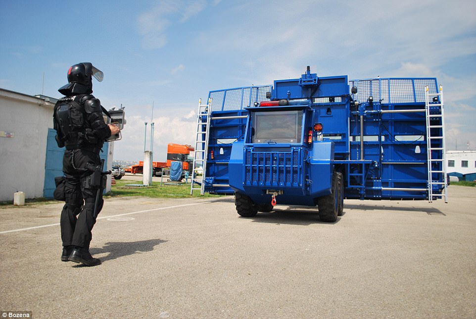 Szlovákiában gyártották azt a 18-tonnás, 7,5 méter széles és 3 tonna súlyú mozgó fallal felszerelt, távirányítású rendőrségi járművet, amit kifejezetten futballhuligánok ellen terveztek. Monstrum a Božena nevet kapta. A jármű falának tetején rácsok vannak,a rendőrök bevetéskor onnan lőhetik könnygázzal a rendbontókat. A különleges platformon 38 rohamrendőr fér el.