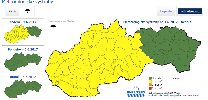 Kezdetben napos idő várható, majd a nyugati országrészektől kezdődően fokozatosan beborul az égbolt, a levegő egyre fülledtebb lesz, délutánra pedig Nyugat- és Közép-Szlovákiában több felé alakulhat ki eső, zápor, helyenként vihar.