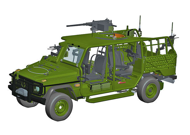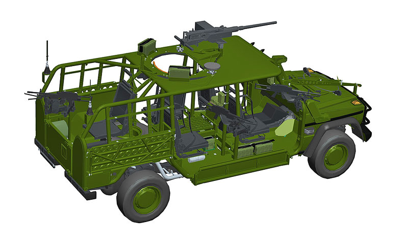 A közel három tonnás gépkocsi 120 km/órára képes felgyorsulni. Négyszemélyes, a hátsó ülések mozgathatóak és 90 fokban elfordíthatóak, és egy plusz ülést szereltek be a lövésznek vagy a gépágyú kezelőjének középen.