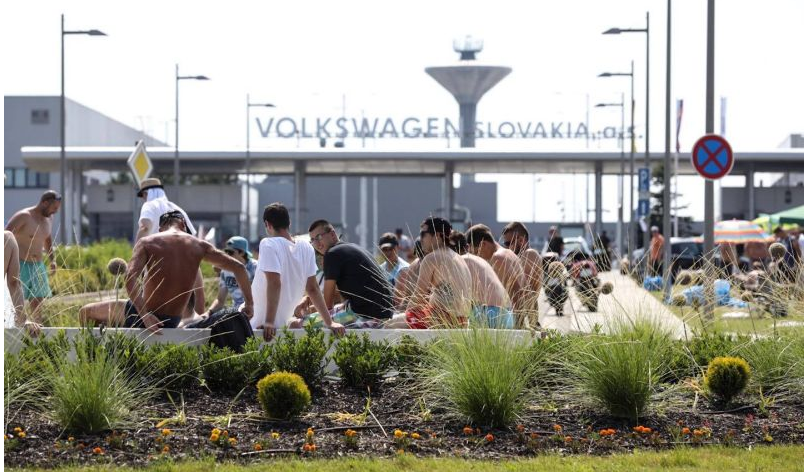 A Volkswagen dolgozói már harmadik napja sztrájkolnak az autógyár előtt. Míg a szakszervezet a Volkswagen vezetésével tárgyal, addig a sztrájkolók a gyár kapuin kívül a rekkenő hőséget próbálják átvészelni.