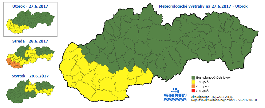 Szlovákia nyugati és déli részére vonatkozóan 15 és 18 óra között első fokú riasztás lesz érvényben a hőség miatt.