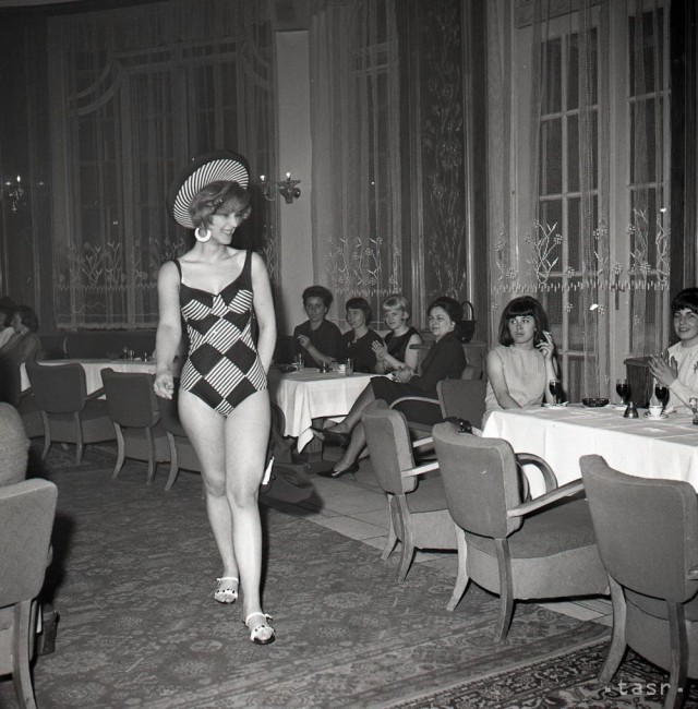 A pozsonyi Interhotelben tartanak divatbemutatót 1966-ban. 80 modell vonult el a közönség előtt. Fotó: Teraz.sk
