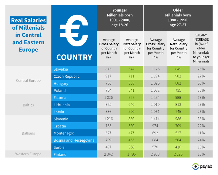 Egy késői milleniumi munkavállaló Szlovákiában átlagosan bruttó 875 eurót visz haza (nettő 674 eurót), ezzel szemben egy korai milleniumi melós bruttóban 1125 eurót keres, nettóban pedig 849 eurót kap. Az eltérés esetükben 26 százalék.