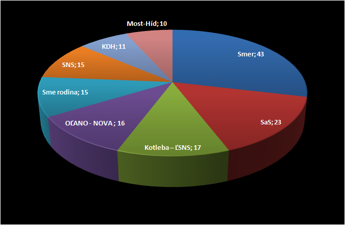 A Focus szeptemberi közvélemény-kutatása szerint a Smer 26 százalékkal jutna be a törvényhozásba (Fico pártja 1,9 százalékpontot gyengült). A második legerősebb párt az SaS 14 százalékkal.