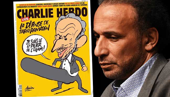 A lap múlt heti számának címlapján az egyik legismertebb iszlámszakértő, Tariq Ramadan erekcióban lévő nemi szervvel látható, felette „az iszlám hatodik pillére” felirattal. A teológus a Facebookon reagált először a francia sajtóban megjelent vádakra, s azokat a „mindenkori ellenségei” által elindított rágalomhadjáratnak nevezte.
